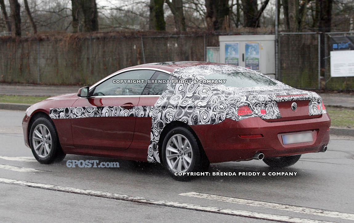 BIMMERPOST NEWSVermillion Red F13 6-series Coupe Spotted The F13 6-series coupe will be unveiled within weeks, but test mules continue to be spotted. Courtesy of Autogespot, this vermillion red F13 6-series was spotted at a European ski resort. And although there is actually more camouflage on this prototype than even earlier spottings, it nevertheless gives us additional looks of the F13 from different angles and perspectives. Based on the exhaust tip design and placement, this particular model appears to be a 650i. It is powered by the same 402hp twin-turbo V8 motor (N63) found in the already released 650i convertible and F10 550i. The 650i coupe is scheduled to begin production in July of this year. Here is the BMW announced production schedule for the F12 / F13 6-series coupe and convertible lineup: MY 2012: March 2011 - 650cv (cabrio) July 2011 - 650cp (coupe) September 2011 - 640cp/cv September 2011 - 650xi cp/cv And older, but more revealing photos: