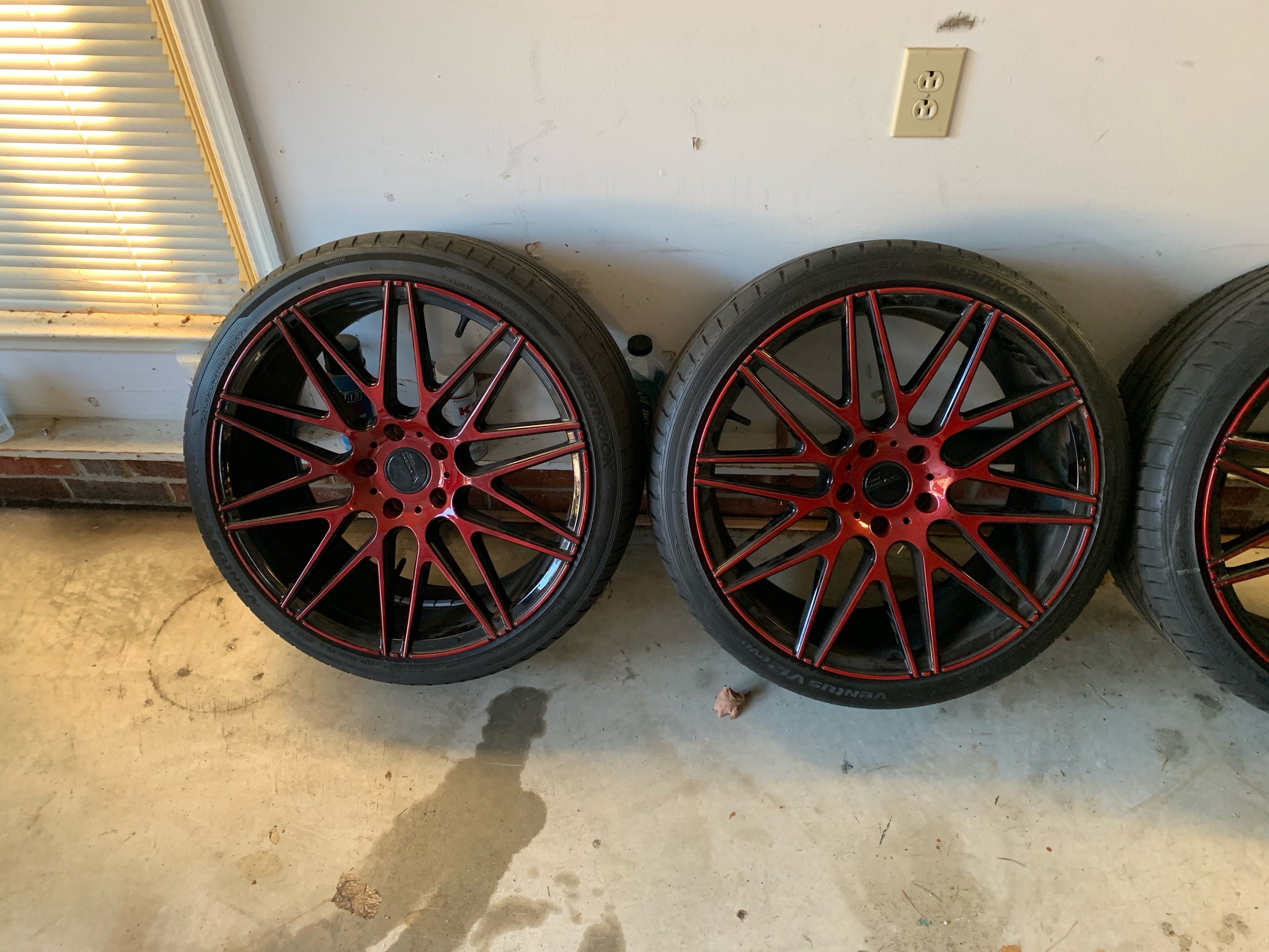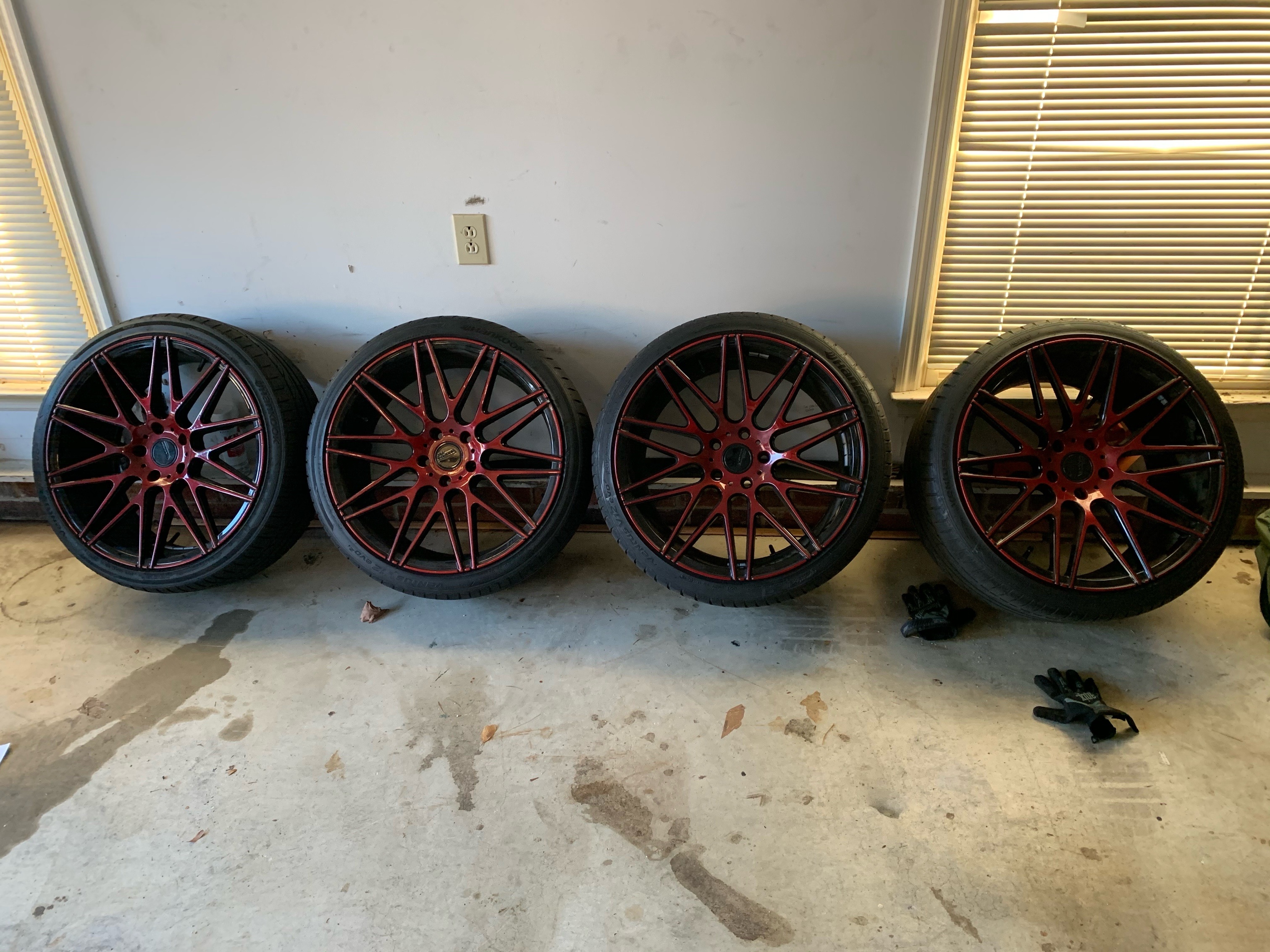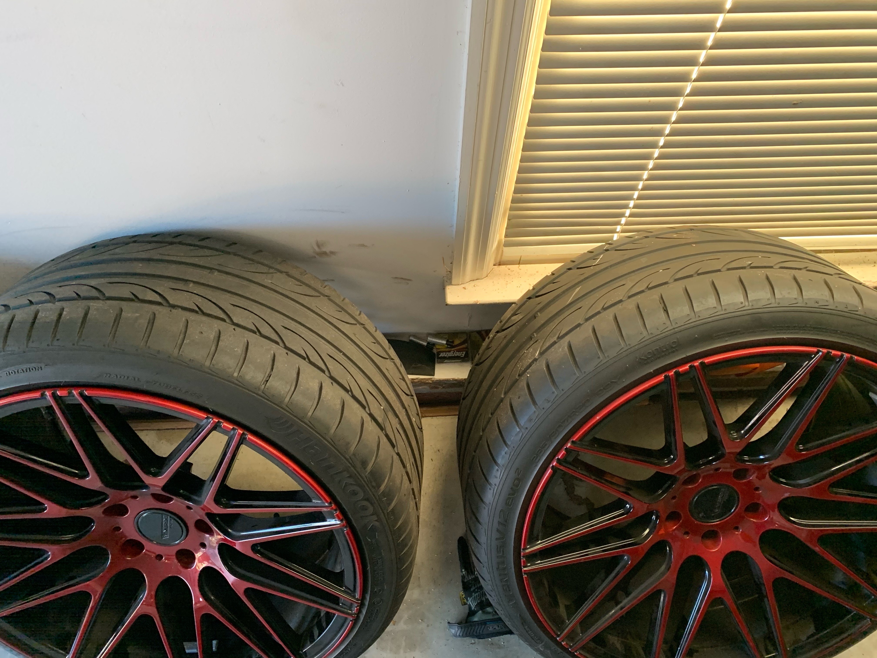 20in staggered set up. 20x0 front 20x10.5 rear. Custom powder coated. No curb rash. 5x120 bolt pattern.