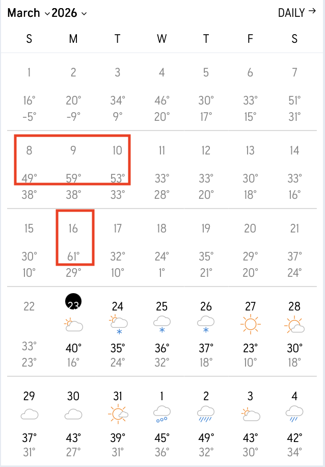 Tomorrow at sunrise 30 deg with snow Last edited by Bluerooster; 03-26-2026 at 02:16 PM.. |